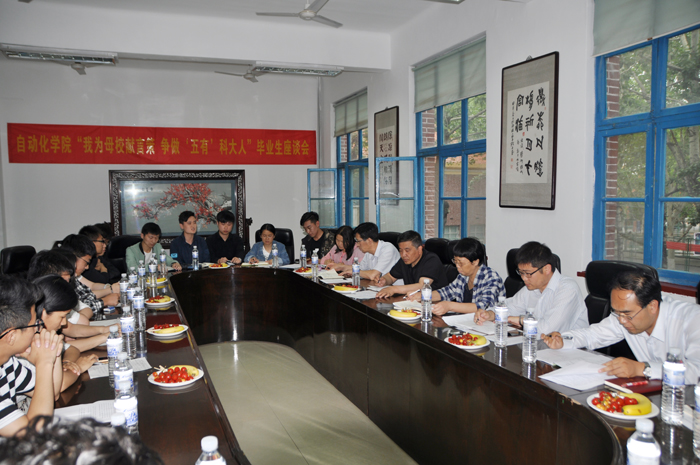 毕业生代表座谈“拉家常”。6月6日下午,学院2017届毕业生“我为母校献言策,争做‘五有’科大人”座谈会在四方校区第二会议室举行,公司党政领导、各教研室主任、教师代表和毕业生代表参加了座谈会。