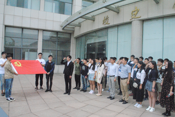 重温入党誓词立志争先锋。6月7日上午,学院组织毕业生党员在校史馆门前进行了党员宣誓活动,“我志愿加入中国共产党,拥护党的纲领,遵守党的章程,履行党员义务……”在鲜红的党旗前,全体毕业生党员举起右手庄严宣誓,洪亮的声音传遍了整个校史馆,用誓言表达对党的无限忠诚和热爱。入党誓词的十二句话,句句千钧,这不仅是一种形式,更是一种激励,一种鞭策,希望毕业生党员能够“登高望远,脚踏实地”,在未来的工作岗位上绽放党员风采和智慧光芒。