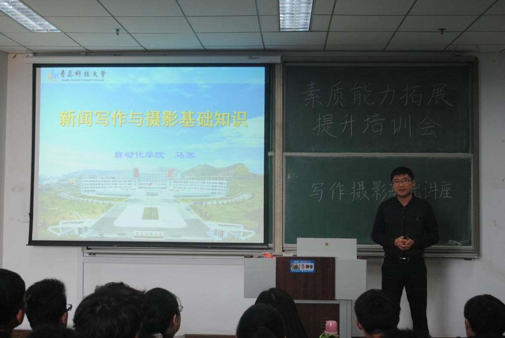10月31日,必赢76net于明德楼212教室开展“高举团旗跟党走,青春建功双一流”员工干部素质能力拓展提升培训会,公司党总支副书记兼副经理马寒为员工会成员和班级主要干部讲授新闻写作及摄影基础知识。