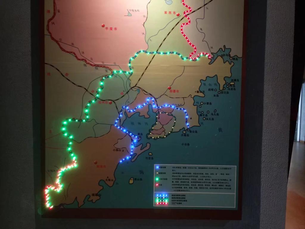 房间侧面放置着当时青岛的模型,映照了康有为的“红瓦绿树,碧海蓝天”。大家一路从1914年第一次世界大战爆发,日本打着归还主权的幌子入侵青岛,看到革命之火燃烧的五四运动与青岛主权的回归。除了史实介绍,展馆展示了山东大学始建时的照片,以及不少名人如康有为、闻一多、老舍、王统照、梁秋实等旅居青岛时的留影。这些都彰显着青岛具有极早的革命历史。