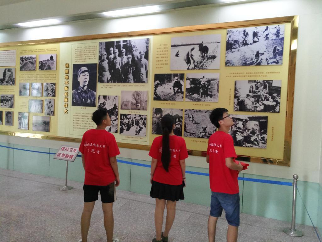 队员们满怀着对革命先烈的敬仰,到达烈士陵园,陵园建在公路边,依山而建,山脚下建有鲁中革命历史纪念馆,队员们顺着台阶拾级而上,最先看到的是抗日烈士碑,石碑的三面篆刻着先烈的名字,这上面的每一个名字,都为革命的胜利做出了贡献,是他们的付出与牺牲,换来了人们和平安定的生活,台阶的两侧,是烈士们的长眠之地,一面面黑色的墓碑上面篆刻烈士的名字以及生卒年份,队员们在墓碑前静静地追思,在沉默中深刻缅怀。队员们发现,有好多先烈再为革命献身的时候年纪也不过30岁左右,正值人生大好时光,为了革命为了人民,他们付出了宝贵的生命。我们应该时刻牢记,是他们的付出,换来了我们和平安定的生活,从陵园出来,队员们来到纪念馆,在这里,一张张图片向人们诉说着革命先烈的事迹,向人们介绍着沂蒙革命的发展,队员们怀着敬意,仔细的看着这些图片,更加深刻的了解了沂蒙革命的发展历程,以及沂蒙精神的诞生与成长。这些图片让队员们深刻的认识到我们今天安定的生活来之不易,是革命先烈们用鲜血换来的,为革命而死,虽死犹生,“人民英雄永垂不朽”。