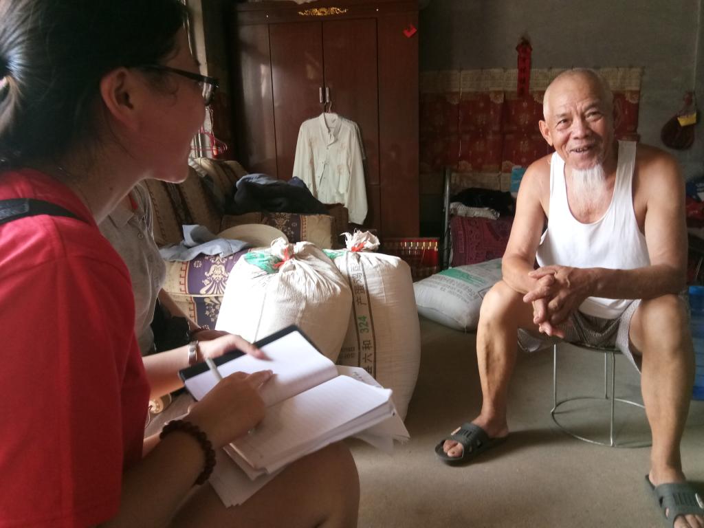 当队员们到达老人家中时,两位老人都很开心站起来迎接我们。狭小但干净是老人的家中带给队员们的第一印象。两位老人都已经八十多岁了,老爷爷的身子还算硬朗,但老奶奶患有脑血栓,耳朵也听不清楚。老人颤颤巍巍的从角落里搬出凳子来让队员们快点坐,队员们感受到了老人浓浓的关爱之情。随着队员们的到来,老人的话语也逐渐多了起来,眼睛也明亮了起来。两位老人满是骄傲的向队员们谈到自己的儿孙,小屋里一时充满了欢声笑语。然而老奶奶突然哽咽道“可惜不在了,六年了。”老人的儿子六年前因脑出血去世,白发人送黑发人无疑给两位老人了一个沉重打击。老奶奶沉浸在痛苦中,一边哭一边回忆。队员们听到心中也很不是滋味,纷纷落泪。在队员们的安慰下,老人止住了泪,重新笑了起来。离别时,老人紧紧的握住队员的手,说“孩子,常来看看,我们再拉拉呱”,一直目送队员们离去。
