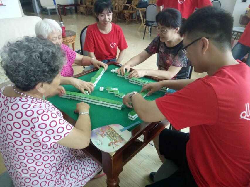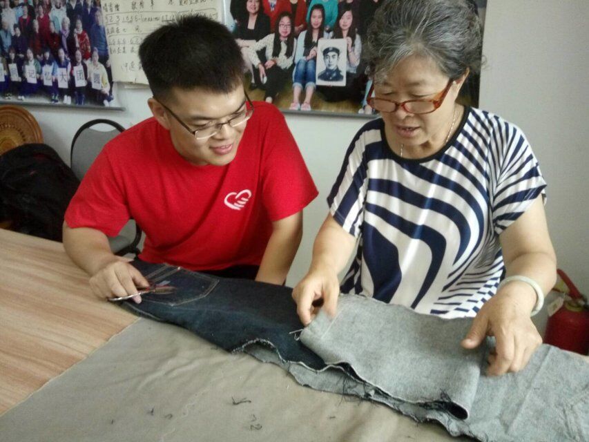 志愿者们分为若干个小组,各有分工。有的架起了老人们最喜欢的麻将桌,志愿者也抱着学习的态度跟老人们玩,不料最后运气好连赢几局,老人反而高兴,连连夸赞“这青年打的真好啊”。她们更是不服老,敢舍敢弃,果断吃碰,也是拿下几场胜利。有的志愿者们帮助平时喜欢做针线活的奶奶们剪裁边角料、测量尺寸等,虽然因为时间的缘故,用旧牛仔裤布料制作的牛仔包没有完全制作完成,但已经初具雏形。有些较年轻的阿姨在大厅里放着音乐跳舞,志愿者们也上去跟着音乐有模有样的学了几招几式,逗的阿姨和周围奶奶们捧腹大笑。最后临行时,八大湖老年幸福中心的负责人杨晓玲表示,老人们很久都没有这么开心的娱乐过了,她们跟子女交流的少了,所以真真正正把热心的志愿青年当成自己的孩子。