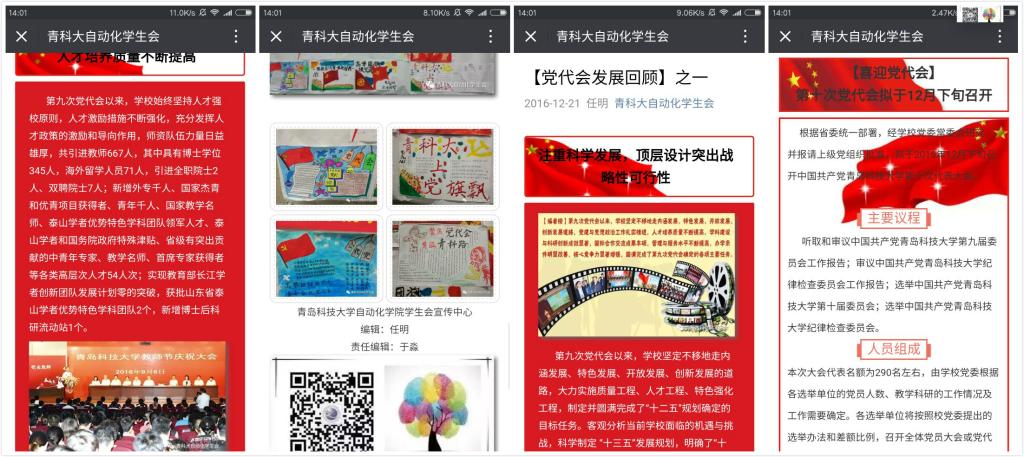 为迎接党代会的召开,学院员工会于12月上旬开始在员工会微信平台上推送有关学校第十次党代会的消息和新闻,营造了喜迎党代会的氛围。2016级各团支部积极响应高校共青团改革,坚持“凝聚青年、服务大局、当好桥梁”的原则,开展了团干部联系宿舍、帮扶同学的“暖心行动”暨班长、团支部书记要联系好一个宿舍,帮扶好一名困难同学,通过提出具体帮扶措施,以达到宿舍融洽、班级和谐、学风优良的目的,用实际行动向学校第十次党代会献礼。